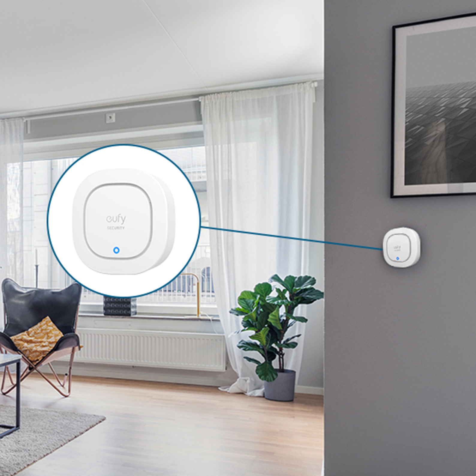 One App Controls All. Links to HomeBase and the eufy Security app. Easily get notifications and check the battery status.